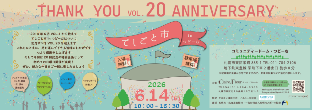 - 2026/03/27 てしごと市inつどーむVOL.20の告知用画像をアップしました。